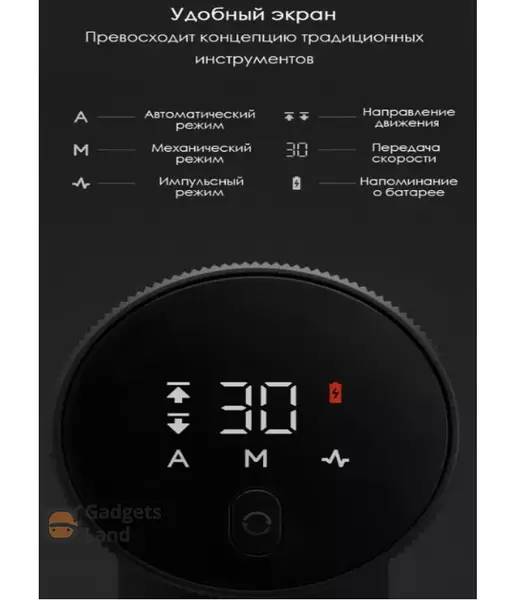 Дополнительно: дрель-шуруповерт оснащена дисплеем для отображения полезной информации и встроенным аккумулятором